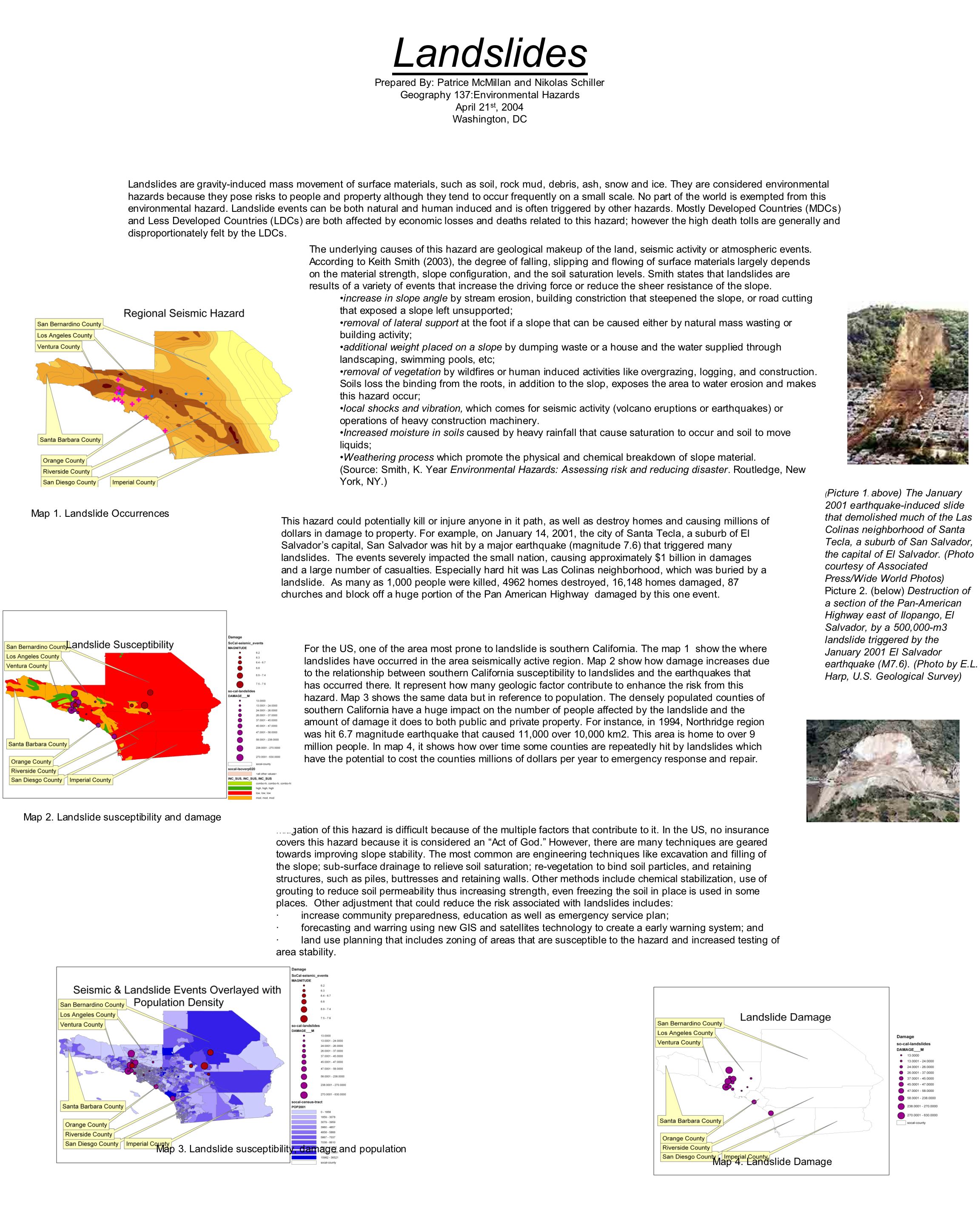Shows analysis of landslides and earthquakes in Southern California