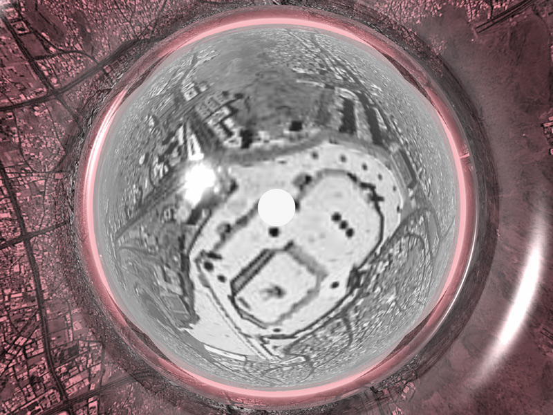 Bryce rendering of a glass lens over an Ikonos satellite